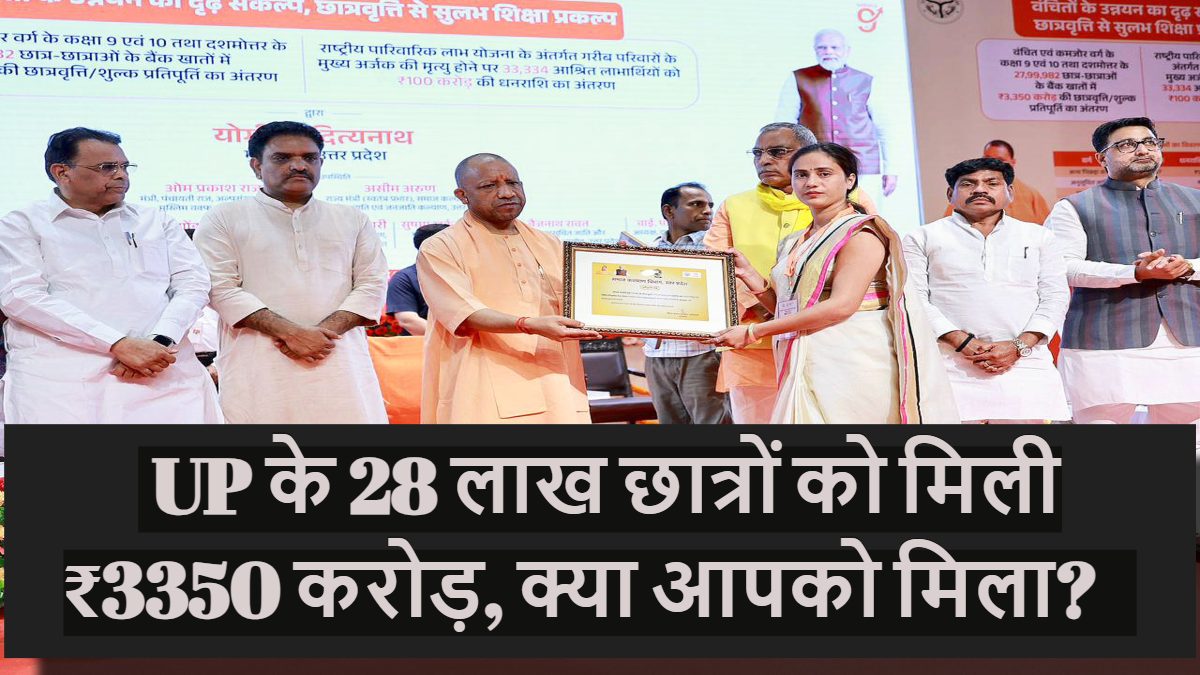 GOVERNMENT SCHEME:UP सरकार ने छात्रों को बड़ा तोहफा दिया है। मुख्यमंत्री योगी आदित्यनाथ ने सोमवार को एक कार्यक्रम में सीधे बैंक खातों में पैसे भेजे।इसमें कक्षा 9-10 और आगे पढ़ने वाले करीब 28 लाख छात्रों के खातों में लगभग ₹3,350 करोड़ रुपये की छात्रवृत्ति और फीस के पैसे सीधे पहुंच गए।साथ ही 33,334 गरीब परिवारों को भी मदद दी गई। उन्हें राष्ट्रीय पारिवारिक लाभ योजना के तहत करीब ₹100 करोड़ रुपये दिए गए।