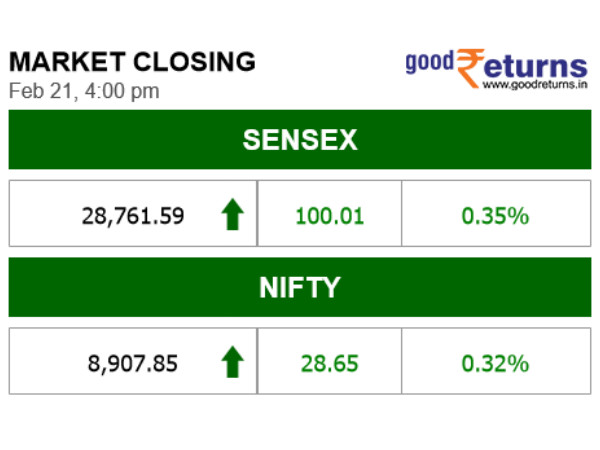 प्रमुख सूचकांक सेंसेक्स 100.01 अंकों की तेजी के साथ 28,761.59 पर और निफ्टी 28.65 अंकों की तेजी के साथ 8,907.85 पर बंद हुआ।