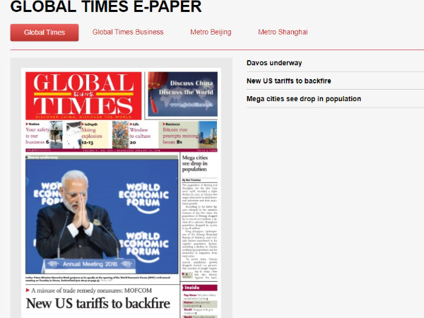चीन ने प्रधानमंत्री नरेंद्र मोदी द्वारा दावोस के भाषण में संरक्षणवाद के खिलाफ की गई टिप्पणी का स्वागत करते हुए बुधवार को कहा कि इस मसले पर वह भारत के साथ मिलकर संरक्षणवाद का विरोध करेगा। बीजिंग ने कहा कि वैश्वीकरण को प्रोत्साहन देते हुए दुनिया की अर्थव्यवस्था की बेहतरी में अग्रणी की भूमिका के तौर पर दोनों देशों का साझा हित है। चीन ने पीएम मोदी की तारीफ करते हुए पीएम मोदी के प्रमुख वक्तव्यों को समाचार पत्र ग्लोबल टाइम्स के पहले पन्ने पर जगह दी है। आपको बता दें कि ग्लोबल टाइम्स को चीन की कम्युनिस्ट सरकार का मुखपत्र कहा जाता है।