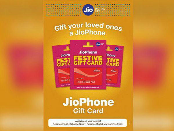 इस गिफ्ट कार्ड को पहले जेनरेशन के जियोफोन को खरीदने के लिए इस्तेमाल किया जा सकता है। यह गिफ्ट कार्ड जियो मॉनसून हंगामा ऑफर के साथ आता है, जिसे कंपनी ने इस साल की शुरुआत में लॉन्च किया था।