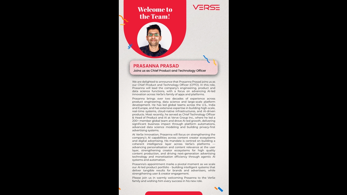 Please note that this message and any attachments may contain confidential and proprietary material and information and are intended only for the use of the intended recipient(s). If you are not the intended recipient, you are hereby notified that any review, use, disclosure, dissemination, distribution or copying of this message and any attachments is strictly prohibited. If you have received this email in error, please immediately notify the sender and delete this e-mail , whether electronic or printed. Please also note that any views, opinions, conclusions or commitments expressed in this message are those of the individual sender and do not necessarily reflect the views of Ver sé Innovation Pvt Ltd.