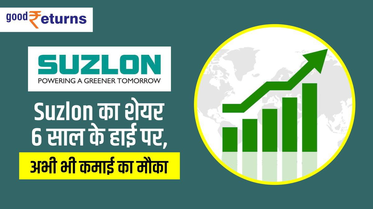 Suzlon Energy shares hit upper circuit: विंड टरबाइन बनाने वाली कंपनी सुजलॉन एनर्जी के शेयर में आज तेजी के चलते अपर सर्किट लग गया। इस तेजी के बीच सुजलॉन एनर्जी ने आज अपनी तेजी का 6 साल पुराना रिकॉर्ड तोड़ दिया। आज से पहले मई 2017 में सुजलॉन एनर्जी के शेयर ने यह स्तर दिखाया था। आइये जानते हैं कि इस शेयर का रेट अब कहां तक जा सकता है।